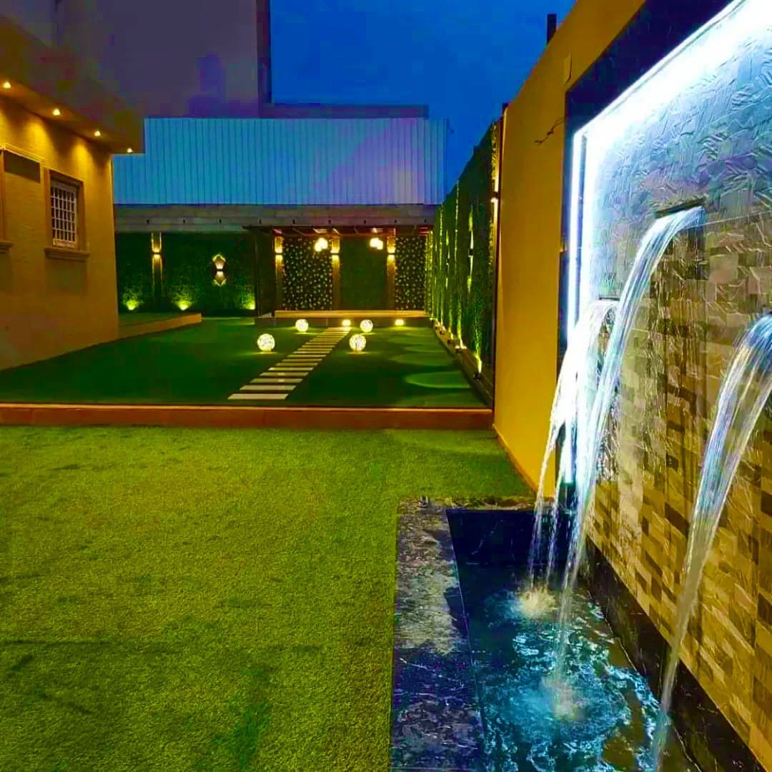 مع تدفق المياه الهادئ أو القوي، وتأثيرات الإضاءة المبهرة التي تعزز جمال المكان في الليل. بعد الموافقة على التصميم، يتم تركيب الشلال أو النافورة بمهارة، مع الالتزام بالمعايير الفنية والأمان.