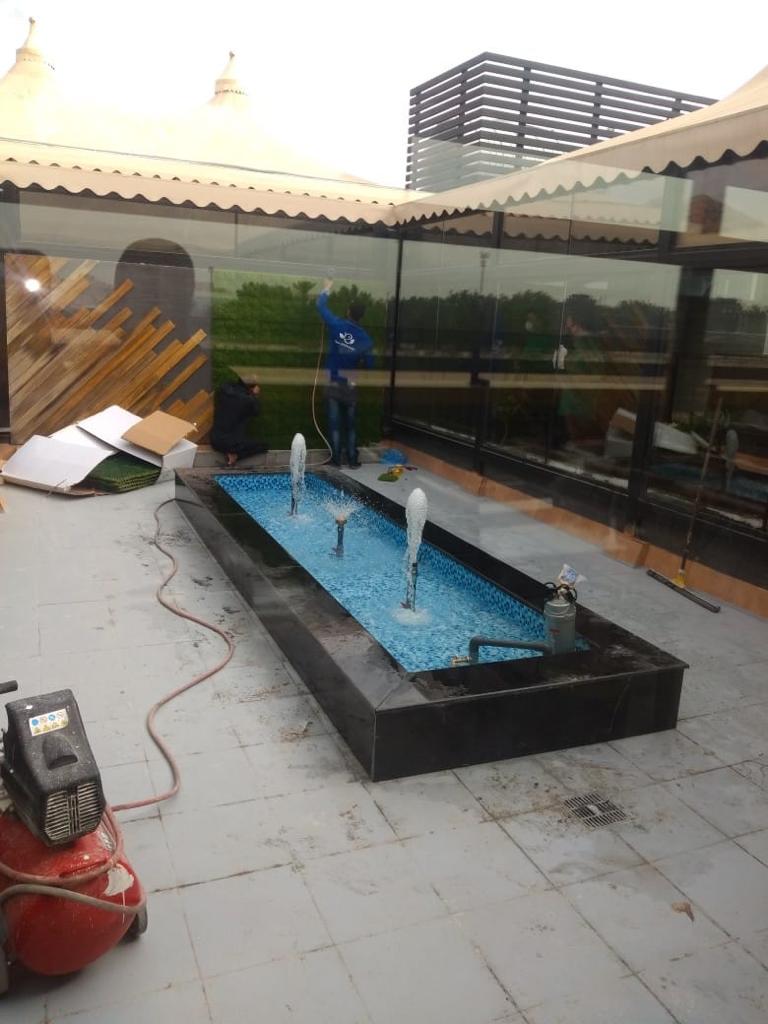 المائية المتقدمة. يحتاج الأمر أيضًا إلى اختيار المواد المناسبة للشلالات والنوافير، مثل الأحجار الطبيعية أو المواد الصناعية ذات الجودة العالية، بحيث تكون متينة ومقاومة للتآكل والعوامل الجوية.