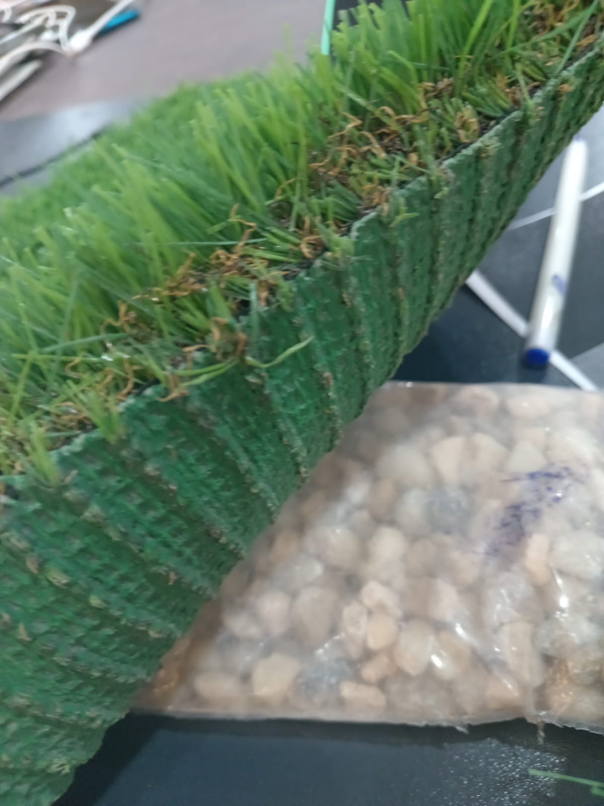 مثل النايلون والبولي ايثلين، يستخدم في الحدائق المنزلية والبلكونات والملاعب الرياضية.