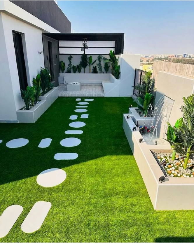 يعتبر العشب الصناعي بديلاً مثاليًا للعشب الطبيعي، حيث يوفر المظهر الطبيعي والملمس الناعم دون الحاجة إلى الري المستمر والتقليم والتسميد.